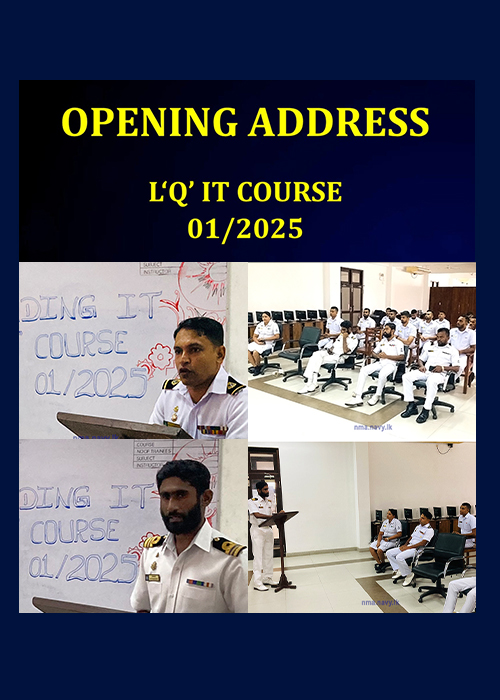 The Certificate Awarding Ceremony of the Long Executive Specialisation Course No. 05 basic phase took place at the Admiral Wasantha Karannagoda Auditorium on 08th April 2025 with the presence of. Rear Admiral R Joseph, Flag Officer Commanding Naval Fleet and Commandant, Naval and Maritime Academy as the Chief Guest. Forty Eight (48) Executive Officers successfully …