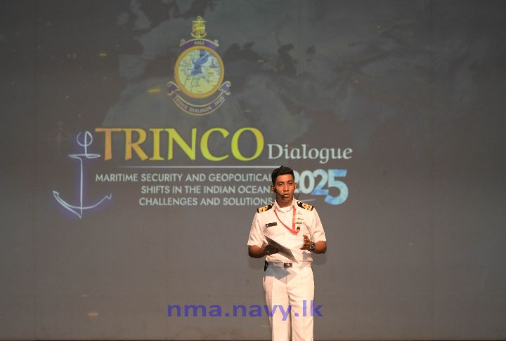 ‘ඉන්දියානු සාගරයේ සමුද්රීය ආරක්ෂාව සහ භූ දේශපාලනික වෙනස්වීම්: අභියෝග සහ විසඳුම්’ යන තේමාව යටතේ පැවති ‘ත්රිකුණාමල සමුද්රීය කතිකාවත 2025’ නාවික හා සාගරික විද්යාපිඨයේ අඥාපති කොමදෝරු දිනේෂ් බණ්ඩාර නිලධාරිතුමාගේ පූර්ණ මඟ පෙන්වීම යටතේ 38 වන කනිෂ්ඨ නාවික මාණ්ඩලික පාඨමාලාවේ නිලධාරින් විසින් කාලෝචිත සහ අර්ථාන්විත සංවාදයක් නිර්මාණය කරමින් සංවිධානය කර තිබුණි.