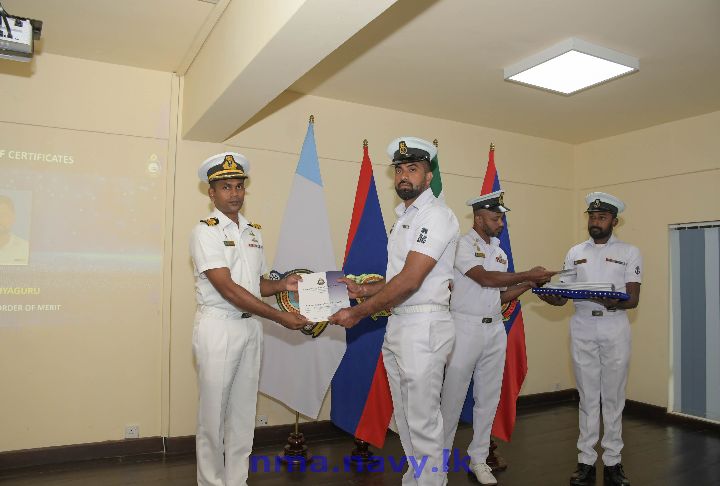 Certificate Awarding Ceremony of Standards of Training, Certification and Watch Keeping (STCW) Basic Safety and Maritime English (Support Level) Course No. 06/2025 (S) and Course No. 07/2025 (S) were held on 15th October 2025 at the Mini Auditorium of the Naval and Maritime Academy. The ceremony was graced by the Commander (N) Asanka Rajapaksha, Officer-in-Charge of the Merchant Marine Training School.