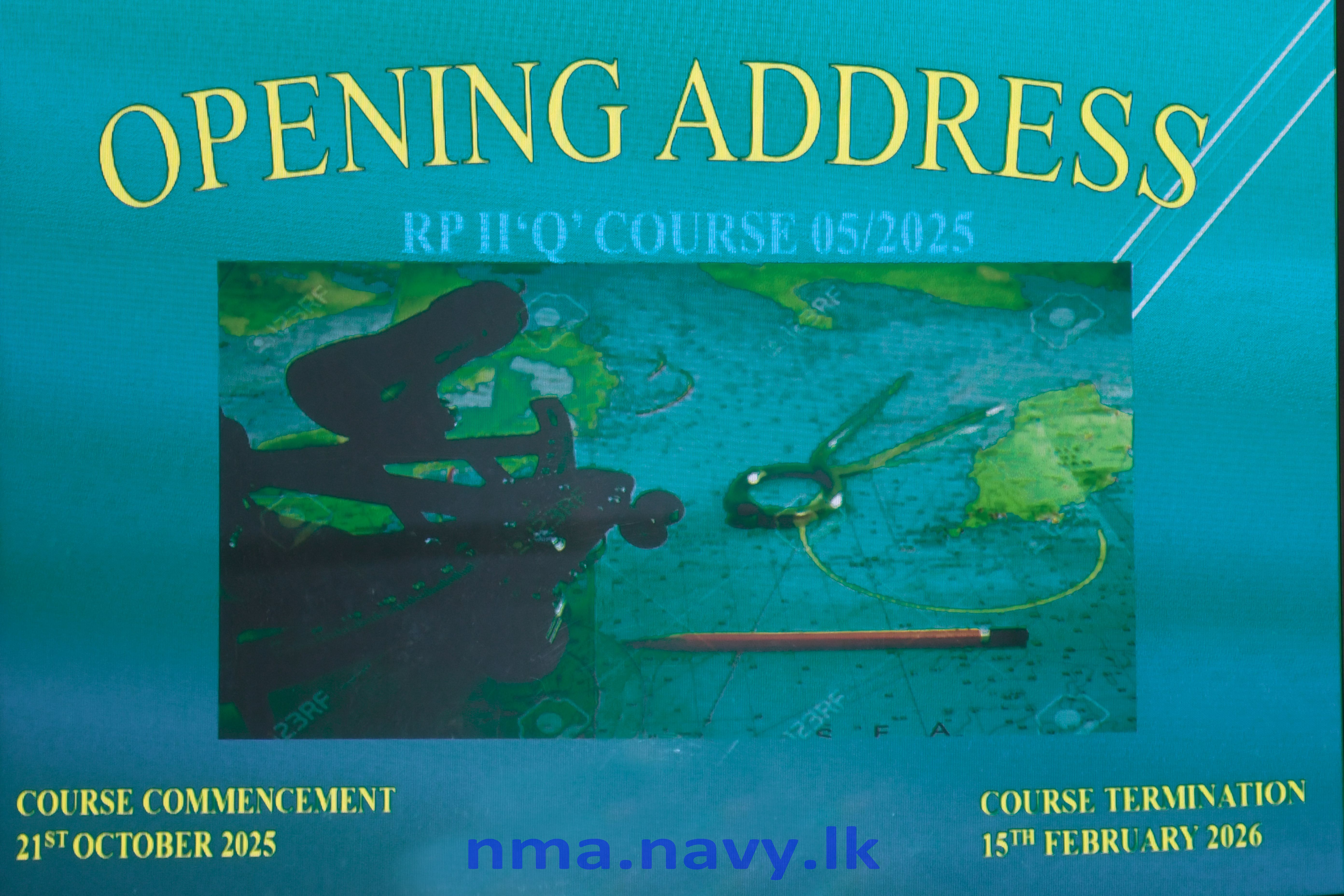 தொடக்க விழாவின் போது, நேவிகேஷன் பள்ளியின் பொறுப்பாளர், கமாண்டர் (என்டி) எச்.எம்.டபிள்யூ.எம். திலகரத்னா பயிற்சியாளர்களிடம் உரையாற்றினார். தொழில்முறை நேவிகேட்டர் யோமன் மற்றும் ரேடார் பிளாட்டர்களாக தங்கள் கடமைகளைச் செய்ய அவர்களைத் தயார்படுத்துவதில் பாடநெறியின் முக்கியத்துவத்தை எடுத்துரைத்தார். தலைமை பயிற்றுவிப்பாளர், பயிற்றுனர்கள் மற்றும் பிரிவு குழுவினரும் இந்த நிகழ்வில் பங்கேற்றனர்.