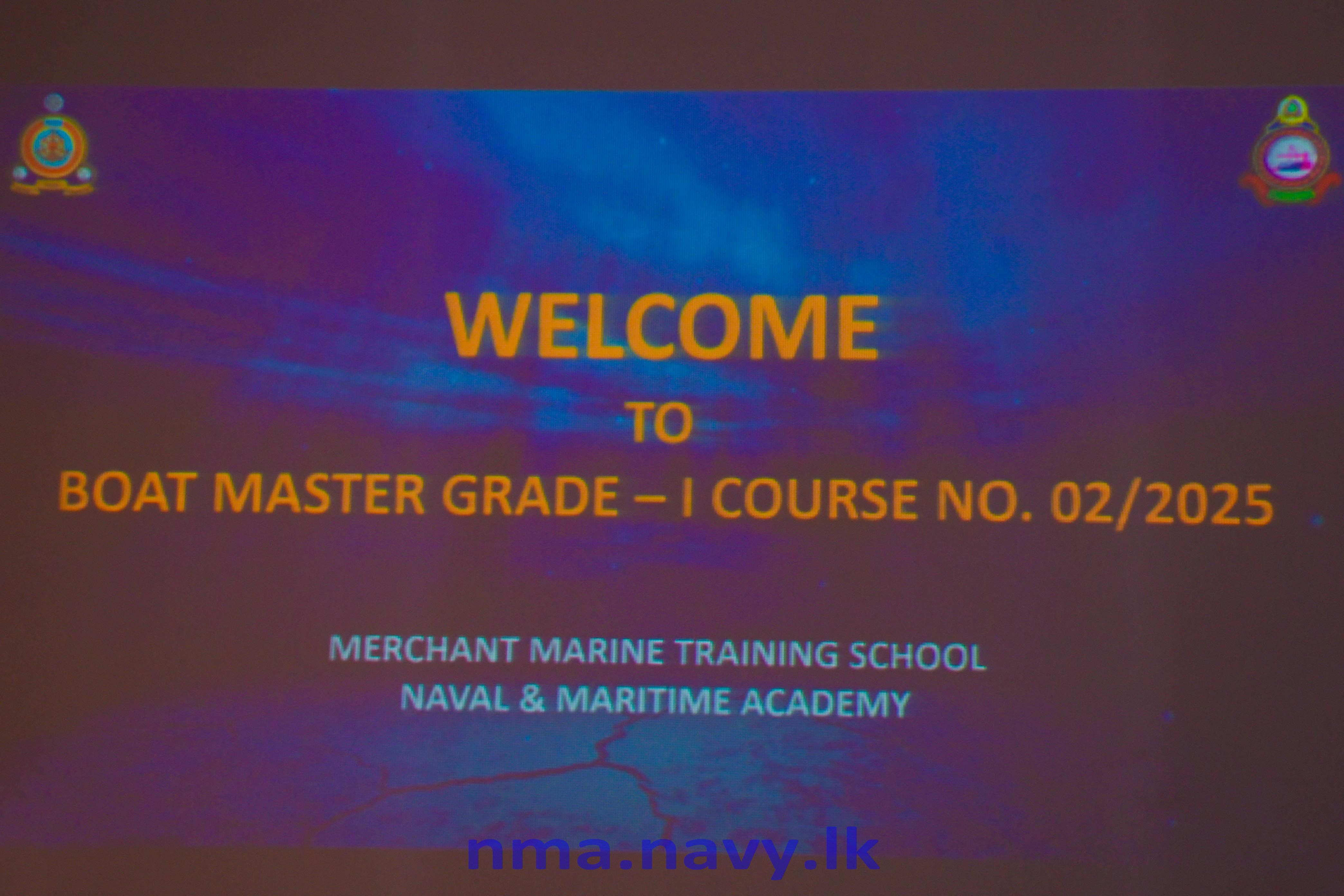 படகு மாஸ்டர் தரம் 1 பாடநெறி 02/2025 மற்றும் பயிற்சி, சான்றிதழ் மற்றும் கண்காணிப்பு தரநிலைகள் (STCW) அடிப்படை பாதுகாப்பு மற்றும் கடல்சார் ஆங்கில ஆதரவு நிலை பாடநெறி எண். 08/2025(S) ஆகியவை நவம்பர் 03, 2025 அன்று கடற்படை மற்றும் கடல்சார் அகாடமி (NMA) வணிக கடல்சார் பயிற்சிப் பள்ளியில் (MMTS) தொடங்கியது. படகு மாஸ்டர் தரம் 1 பாடநெறி கொடி தர அதிகாரிகள் உட்பட 13 அதிகாரிகளைக் கொண்டுள்ளது, அதே நேரத்தில் STCW அடிப்படை பாதுகாப்பு பாடநெறி 20 மாலுமிகளை உள்ளடக்கியது. இரண்டு பாடநெறிகளும் ஐந்து (05) வாரங்களுக்கு நடைமுறை ரீதியாக திட்டமிடப்பட்டுள்ளன, மேலும் அவை டிசம்பர் 03, 2025 அன்று முடிவடையும்.