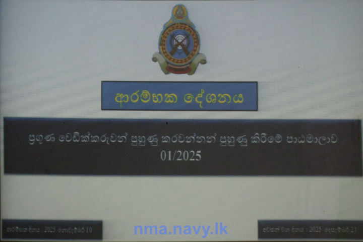 01/2025 ප්රගුණ වෙඩික්කරුවන් පුහණුවන්නන් පුහුණු කිරීමේ පාඨමාලාව, 2025 නොවැම්බර් 10 වන දින නාවික හා සාගරික විද්යාපීඨයේ නාවික ප්රගුණ හා සැගවුණු වෙඩික්කරු පුහුණු පාසලේදී ආරම්භ විය.