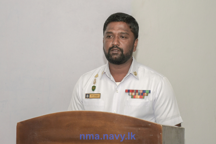 පාඨමාලාවේ ආරම්භක දේශණය නාවික ප්රගුණ හා සැගවුණු වෙඩික්කරු පුහුණු පාසලේදෙවන අණ භාර නිලධාරී උප ලුතිනන් (නාපාබල) ඒඑම්ඊඩී සෙනෙවිරත්න විසින් පවත්වන ලදී.