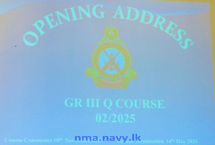 GR III தகுதிப் பயிற்சி 02/2025 இன் தொடக்க விழா நவம்பர் 10, 2025 அன்று கடற்படை மற்றும் கடல்சார் அகாடமியின் கன்னரி பள்ளியில் (NMA) நடைபெற்றது. இந்தப் பாடநெறி பங்கேற்பாளர்களை தொழில்முறை ஆயுத நிபுணத்துவத்துடன் சித்தப்படுத்துவதற்காக வடிவமைக்கப்பட்டுள்ளது, இது கப்பல்களிலும் நிறுவனங்களிலும் துப்பாக்கி சுடும் கடமைகளை திறம்பட மற்றும் திறமையாகச் செய்ய உதவுகிறது. GR III பாடநெறி ஐம்பத்தொன்பது (59) மாலுமி பயிற்சியாளர்களைக் கொண்டுள்ளது, அவர்கள் கல்வி மற்றும் நடைமுறை அமர்வுகளுக்கு இடையில் இருபத்தேழு (27) வார பயிற்சித் திட்டத்தில் பங்கேற்கின்றனர். கன்னரி பள்ளியின் பொறுப்பதிகாரி, கமாண்டர் (ஜி) ஆர்.எம்.டி. ரத்நாயக்க இந்த நிகழ்வைத் தொடங்கி வைத்தார்.