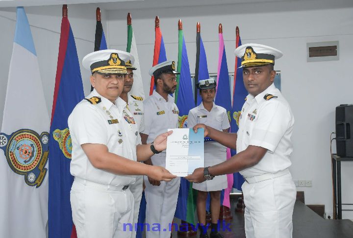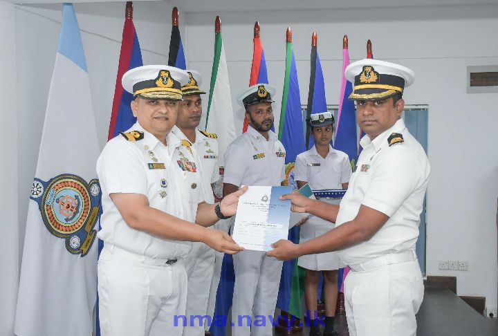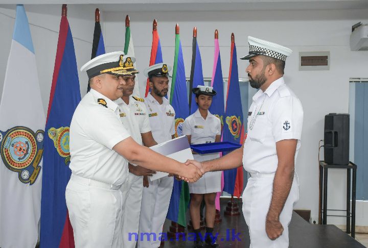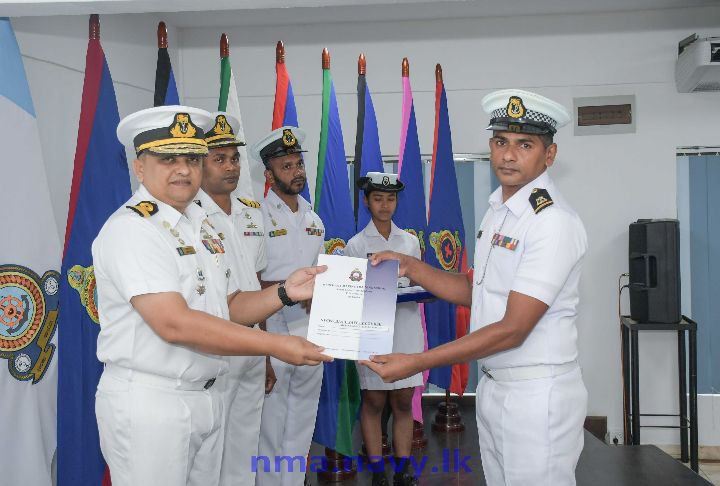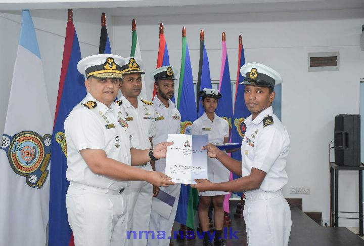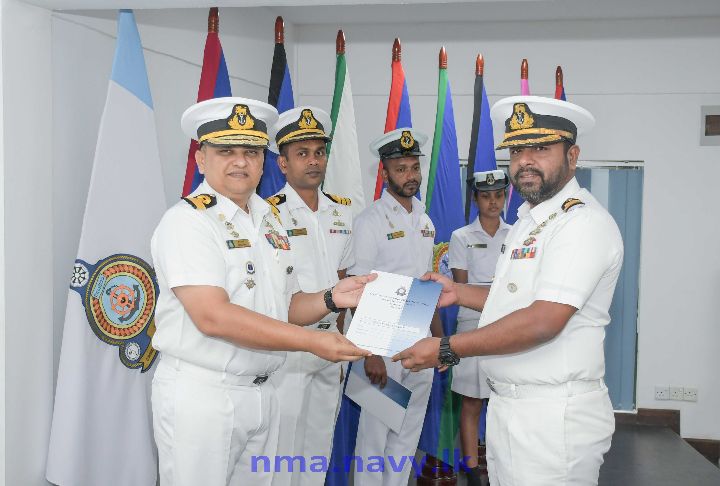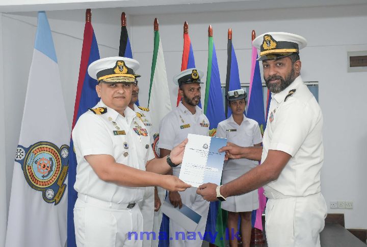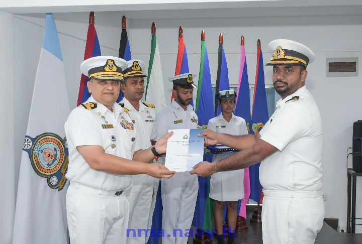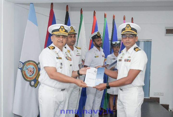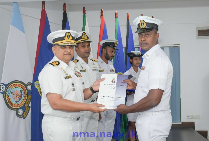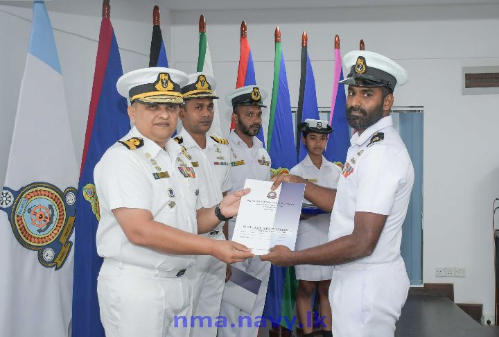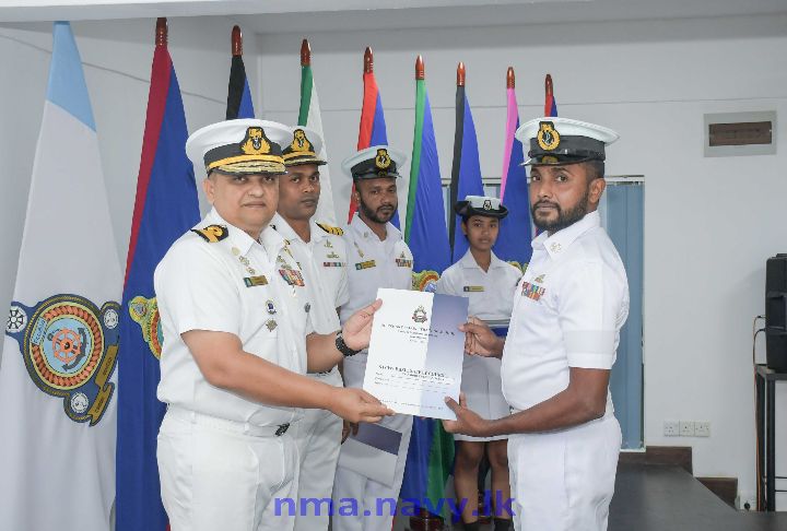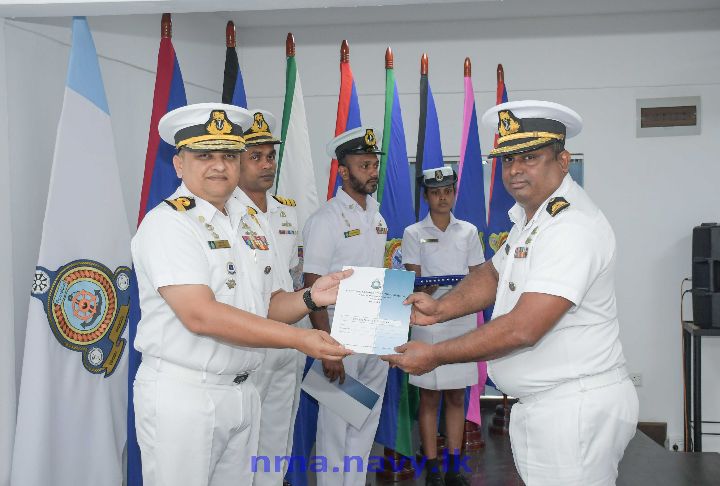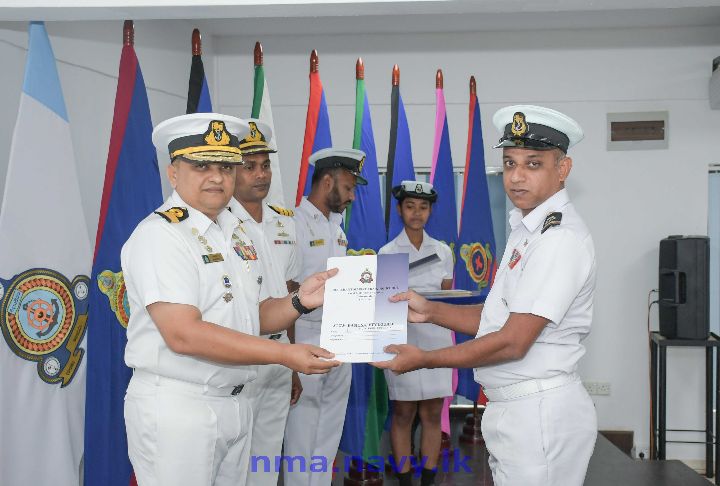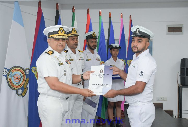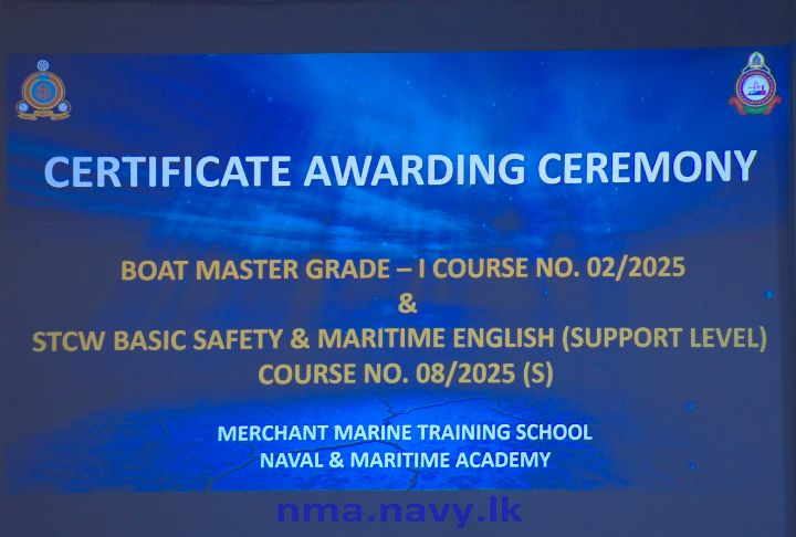 படகு மாஸ்டர் தரம் 1 பாடநெறி எண். 02/2025 மற்றும் பயிற்சி தரநிலைகள், சான்றிதழ் மற்றும் கண்காணிப்பு (STCW) அடிப்படை பாதுகாப்பு மற்றும் கடல்சார் ஆங்கிலம் (ஆதரவு நிலை) பாடநெறி எண். 08/2025 (S) ஆகியவற்றிற்கான சான்றிதழ் வழங்கும் விழா 2025 டிசம்பர் 3, அன்று கடற்படை மற்றும் கடல்சார் அகாடமியின் (NMA) மினி ஆடிட்டோரியத்தில் நடைபெற்றது. இந்த விழாவில் NMA இன் தளபதி கொமடோ தினேஷ் பண்டார தலைமை விருந்தினராக கலந்து கொண்டார்.