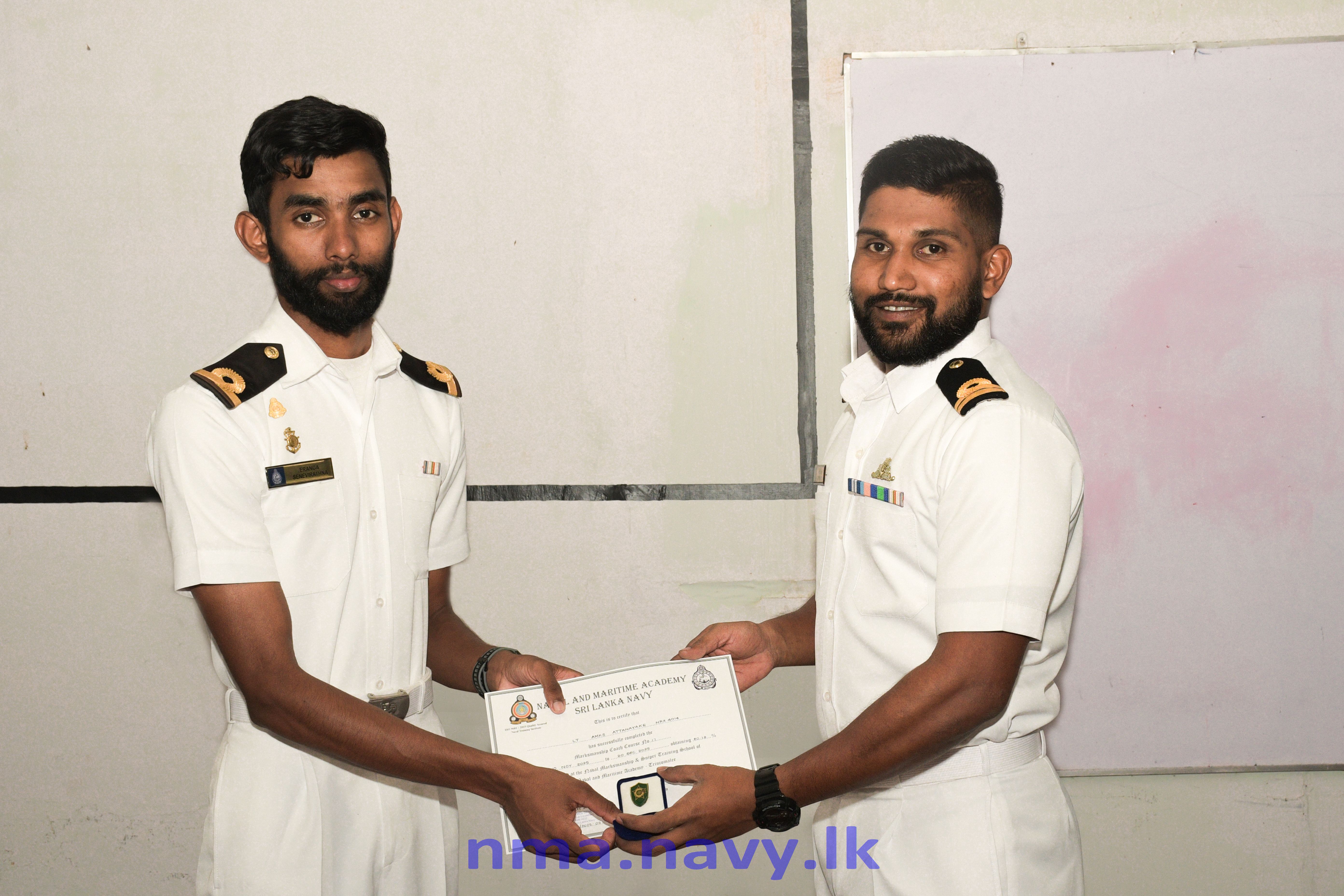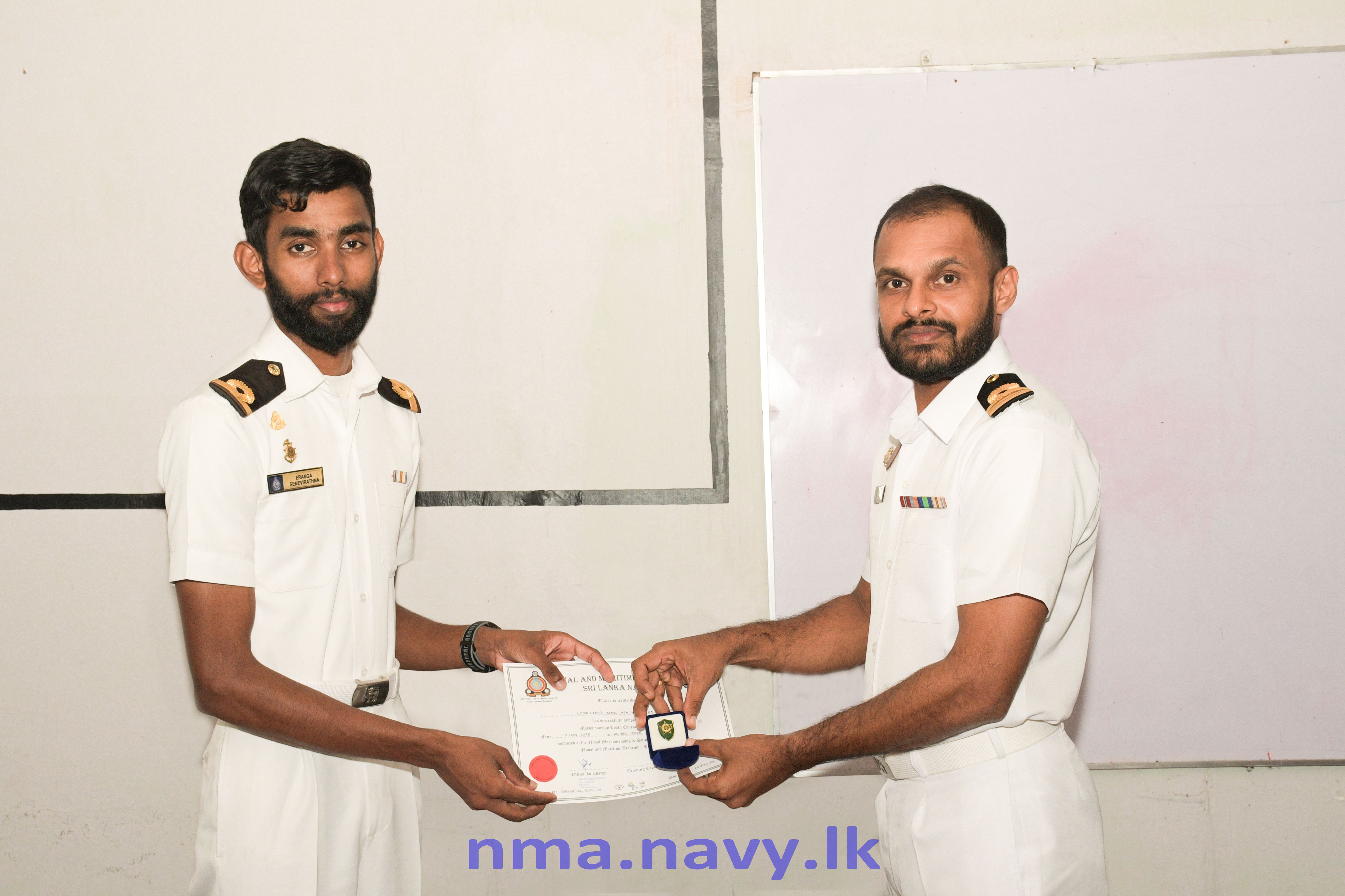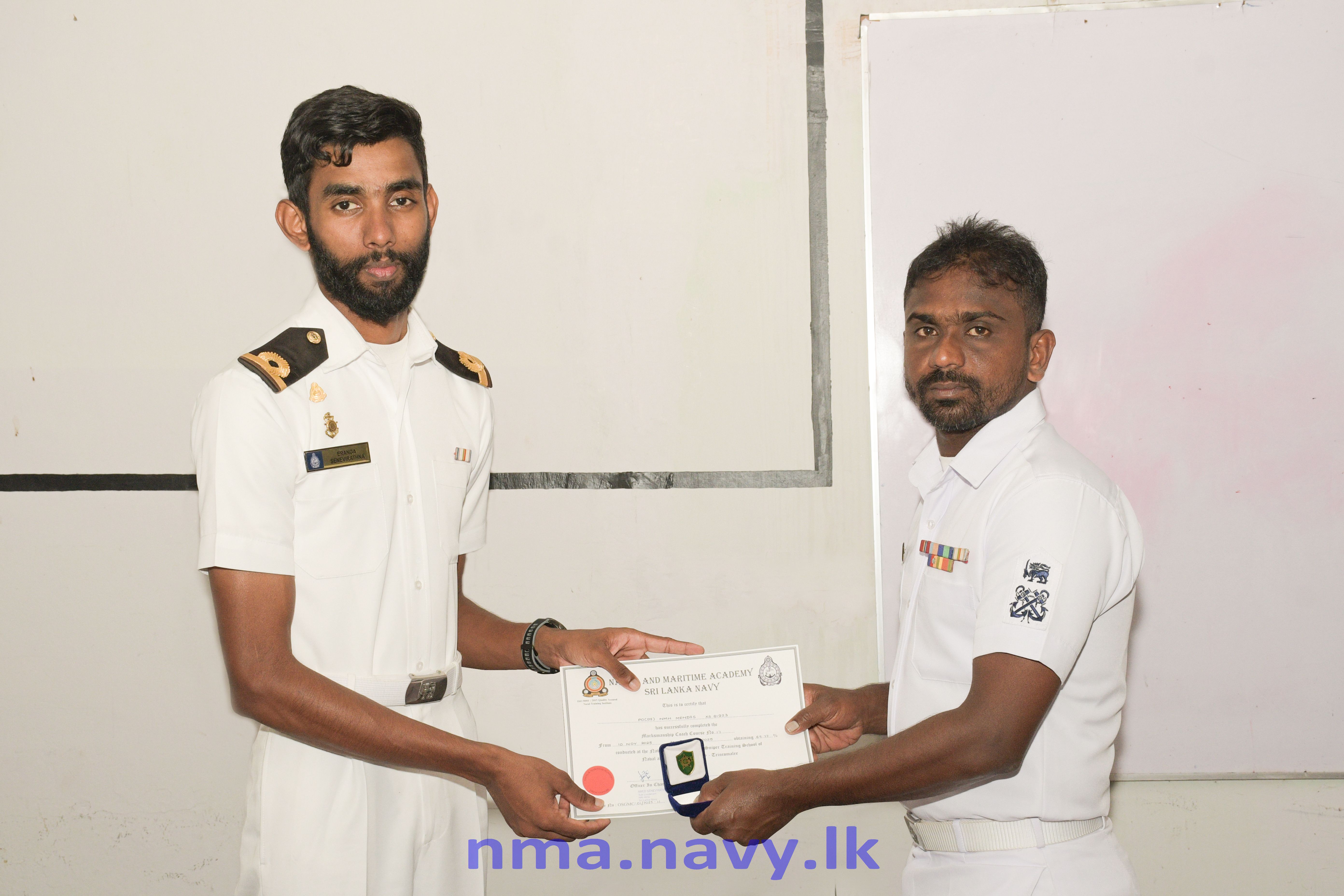 பாடநெறி வெற்றிகரமாக நிறைவடைந்ததைக் குறிக்கும் வகையில் பங்கேற்பாளர்களுக்கு சான்றிதழ்கள் மற்றும் மார்க்ஸ்மேன்ஷிப் பயிற்சியாளர் சின்னம் வழங்கப்பட்டது. லெப்டினன்ட் ஏ.எம்.கே.எஸ். அத்தநாயக்க 80.78% மதிப்பெண்களைப் பெற்று முதலிடத்தைப் பிடித்தார், அதே நேரத்தில் எல்.எஸ். (டி.ஐ) கே.கே.எம்.டி.எஸ். பிரியந்தா மற்றும் எல்.சி.டி.ஆர் (சி) ஓ.கே.டி.யு.பி. கங்கனம்கே ஆகியோர் முறையே 80.44% மற்றும் 78.89% மதிப்பெண்களைப் பெற்று 2வது மற்றும் 03வது இடங்களைப் பிடித்தனர். கடற்படை மார்க்ஸ்மேன்ஷிப் ஸ்னைப்பர் பயிற்சிப் பள்ளியின் 2ஐசி, சப் லெப்டினன்ட் (ஐ.என்.எஃப்) ஏ.எம்.இ.டி. செனவிரத்ன இறுதி உரையை நிகழ்த்தினார், பங்கேற்பாளர்களின் பாடநெறி முழுவதும் அவர்களின் மிகுந்த அர்ப்பணிப்பைப் பாராட்டினார், மேலும் அவர்கள் பெற்ற திறன்களின் முக்கியத்துவத்தையும் வலியுறுத்தினார்.
