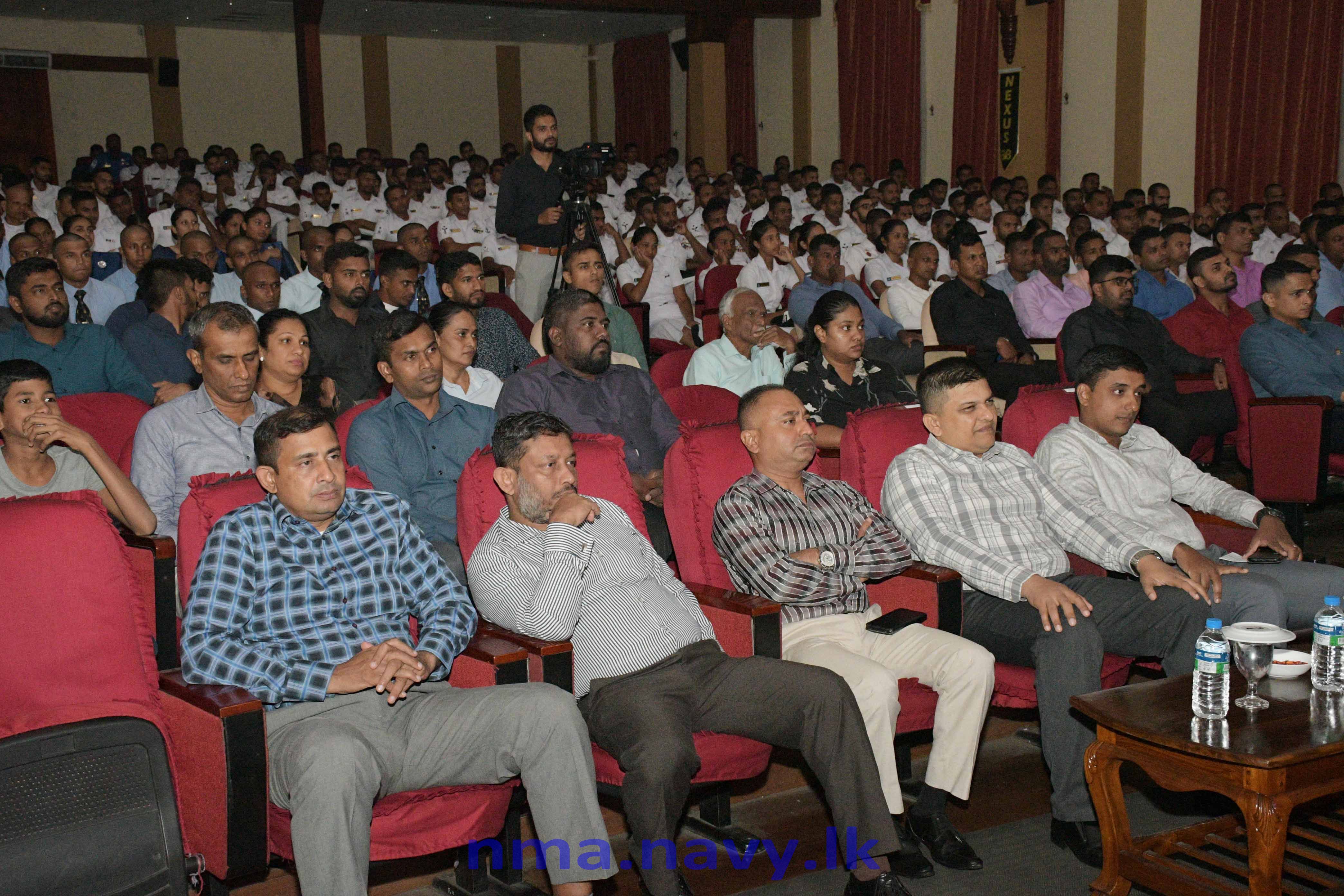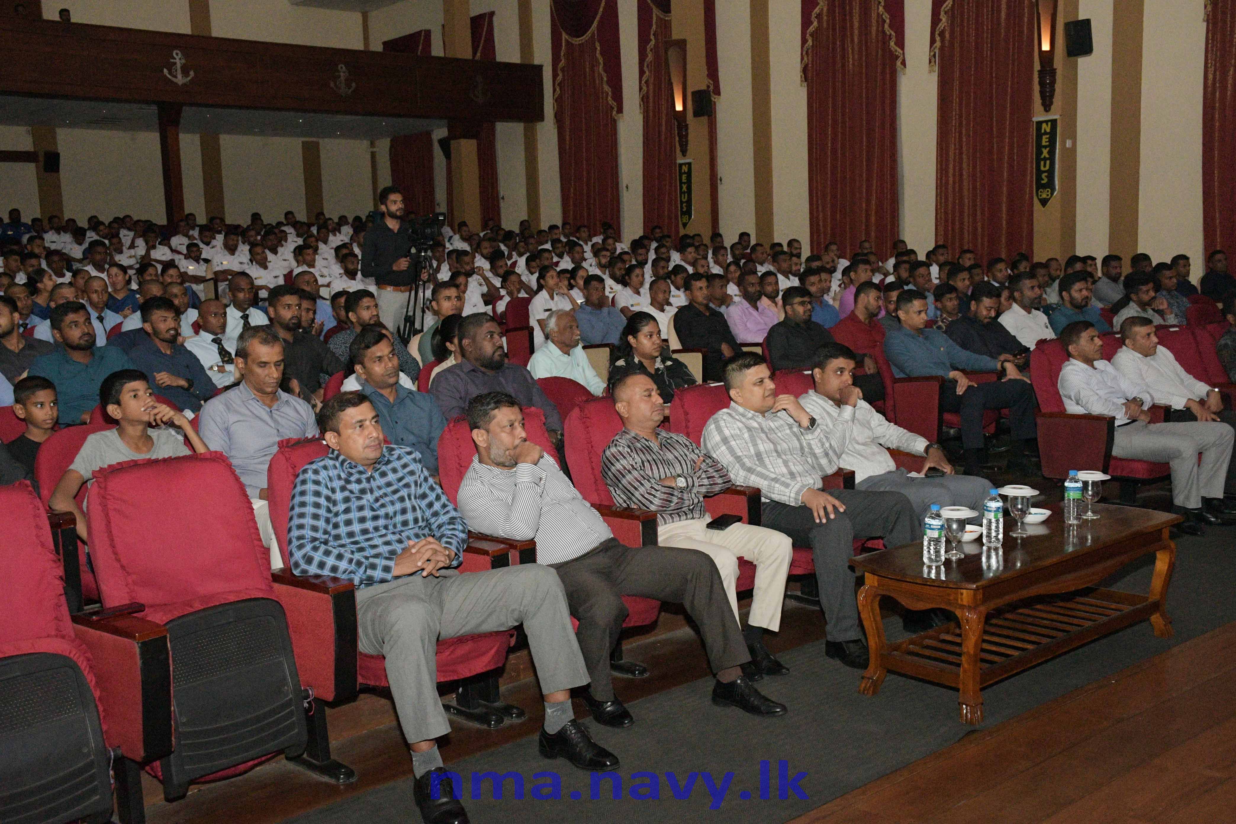 இந்நிகழ்வில் பிரதம விருந்தினராக NMA இன் தளபதி கொமடோர் தினேஷ் பண்டார கலந்து கொண்டார். துணை பயிற்சி கேப்டன், இயக்குநர் பணியாளர் அதிகாரிகள், கட்டளை அதிகாரி மற்றும் நிர்வாக அதிகாரிகள், NMA இன் மூத்த மற்றும் இளைய மாலுமி பயிற்றுனர்கள் மற்றும் அனைத்து மாணவர் அதிகாரிகள் மற்றும் பயிற்சி பெறுபவர்கள் ஆகியோர் கலந்து கொண்டனர். தலைமை விருந்தினர் இளம் கேடட்களின் திறமைகளைப் பாராட்டினார், மேலும் 68வது ஆட்சேர்ப்பின் பிரிவு குழுவின் அதிகாரி பயிற்சி அதிகாரி, பிரிவு அதிகாரிகள் மற்றும் பயிற்றுனர்கள் மற்றும் அதிகாரி பயிற்சி பிரிவின் ஊழியர்களின் முயற்சி மற்றும் அர்ப்பணிப்பைப் பாராட்டினார். மேலும், அவர்களின் தீவிர தொகுதியின் ஒருங்கிணைந்த அங்கமாக மொழித் திறன்களை மேம்படுத்துவதற்கு உதவி வழங்குவதில் அவர்களின் அளவிட முடியாத ஈடுபாட்டிற்காக மொழிப் பள்ளியின் பொறுப்பாளர் மற்றும் ஆங்கில பயிற்றுனர்களின் அர்ப்பணிப்பை அவர் பாராட்டினார் மற்றும் பாராட்டினார்.