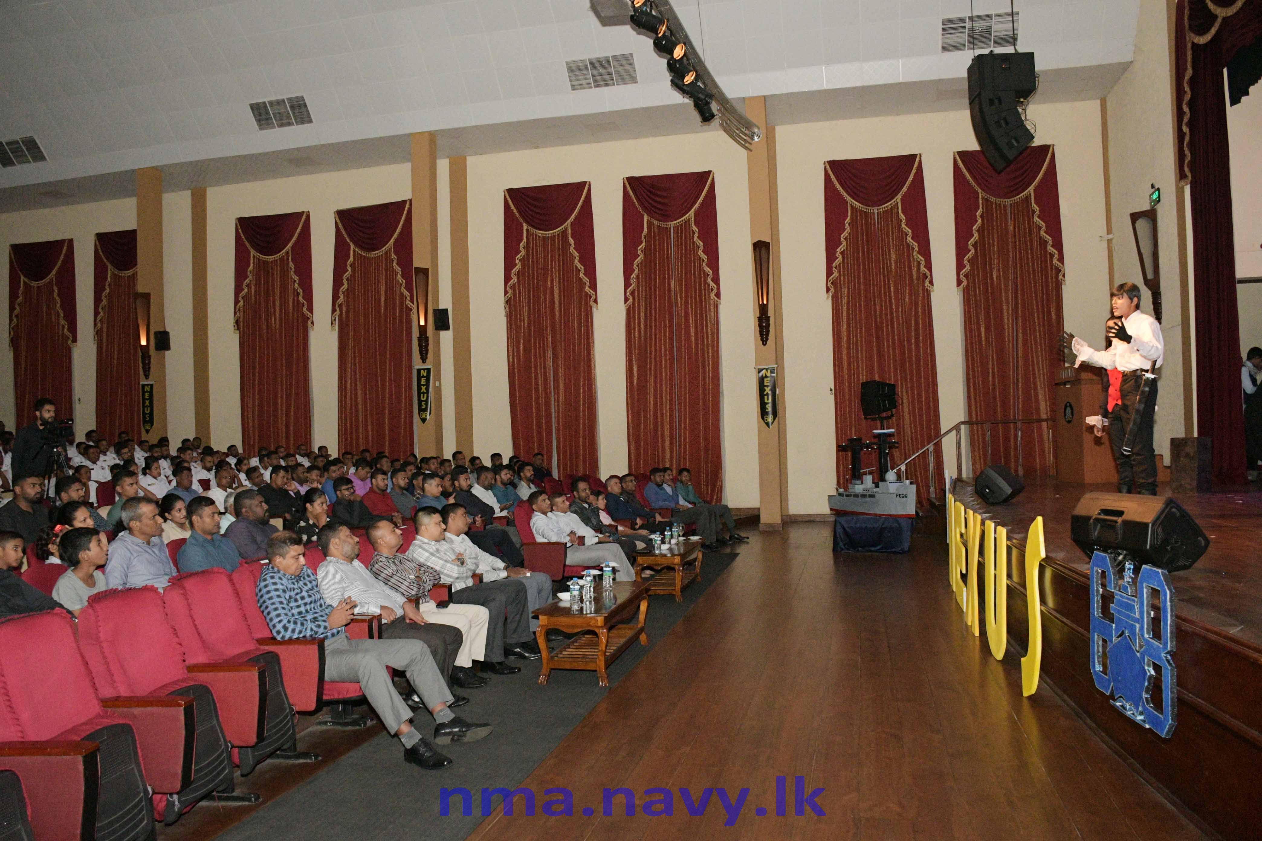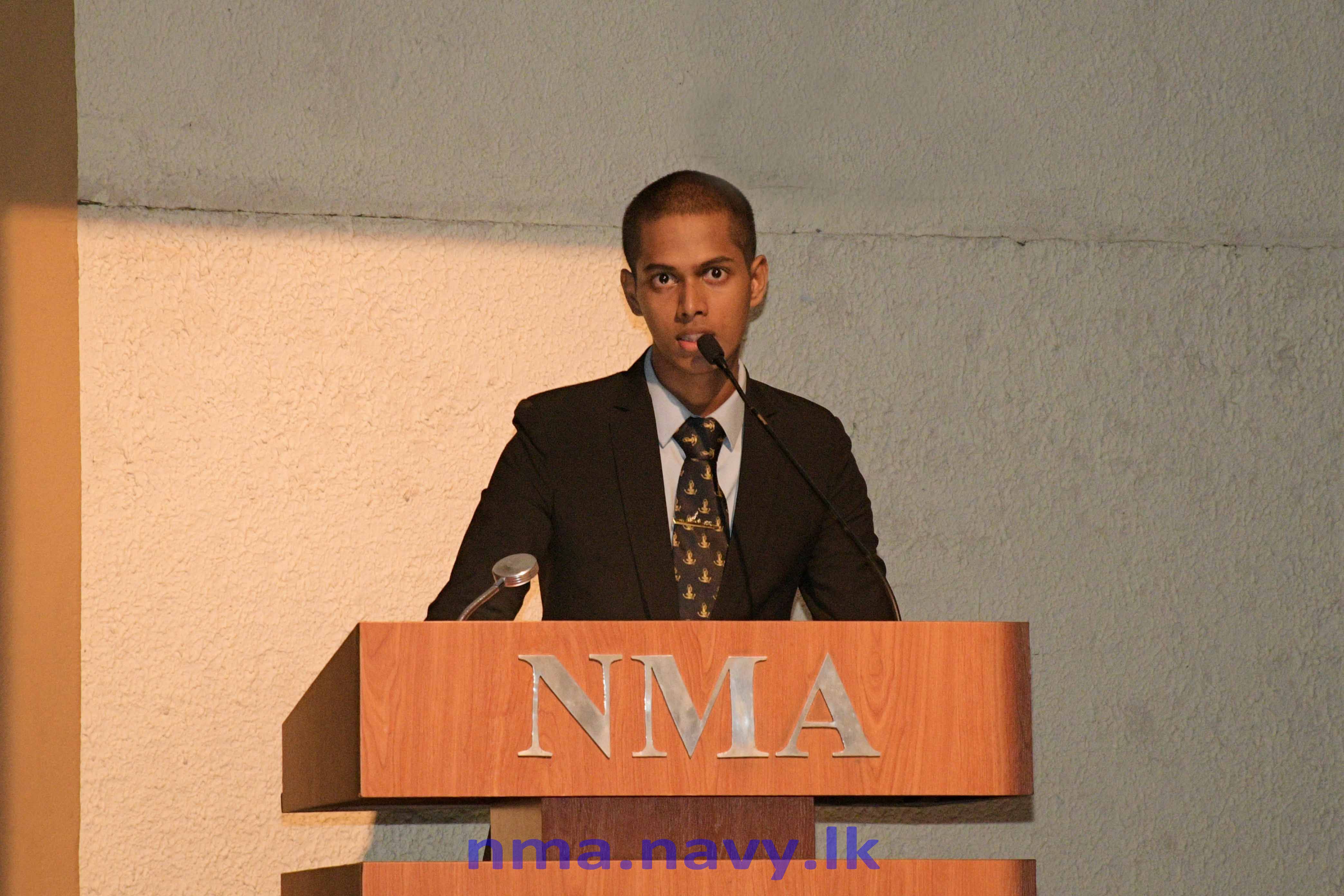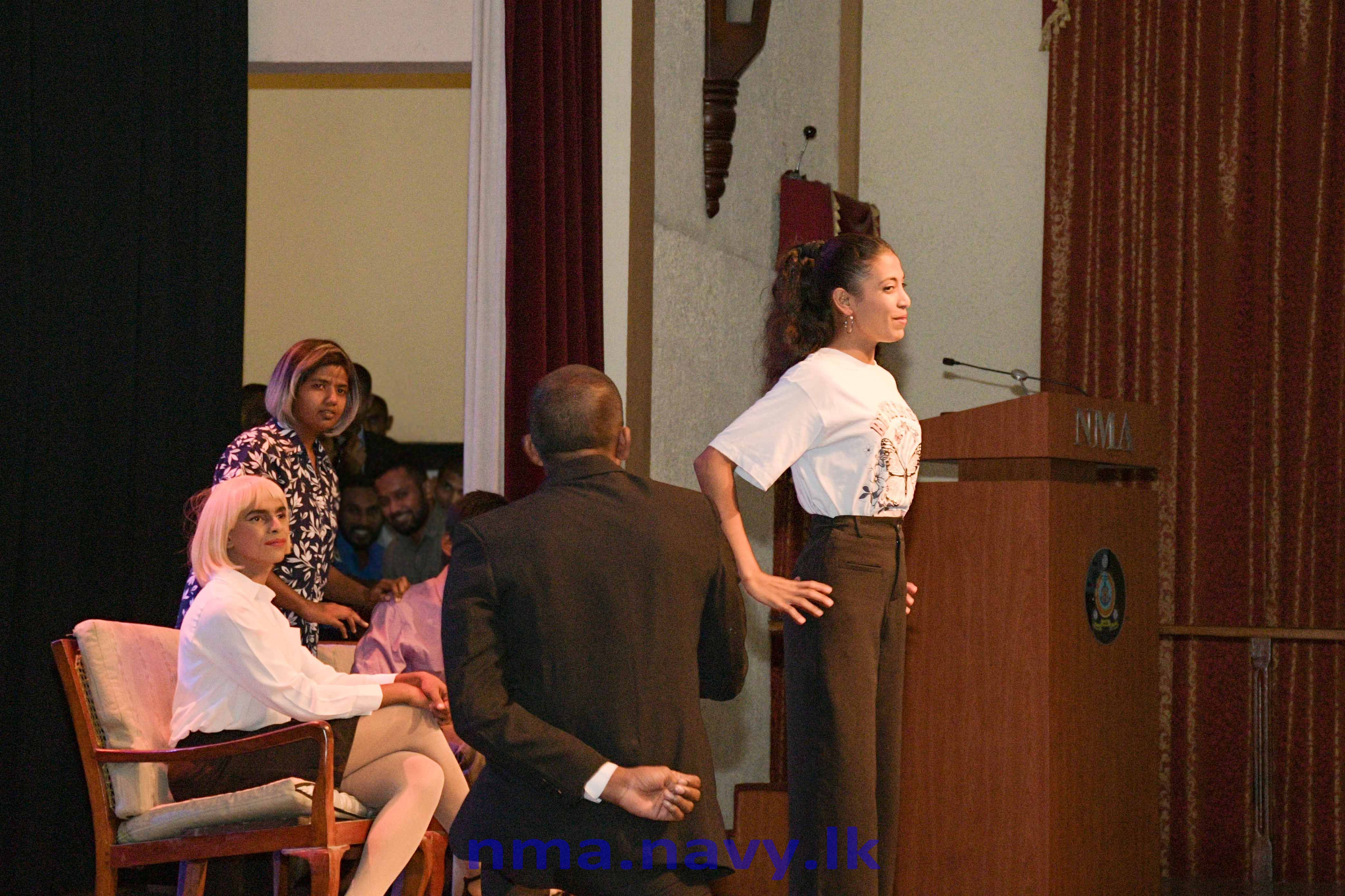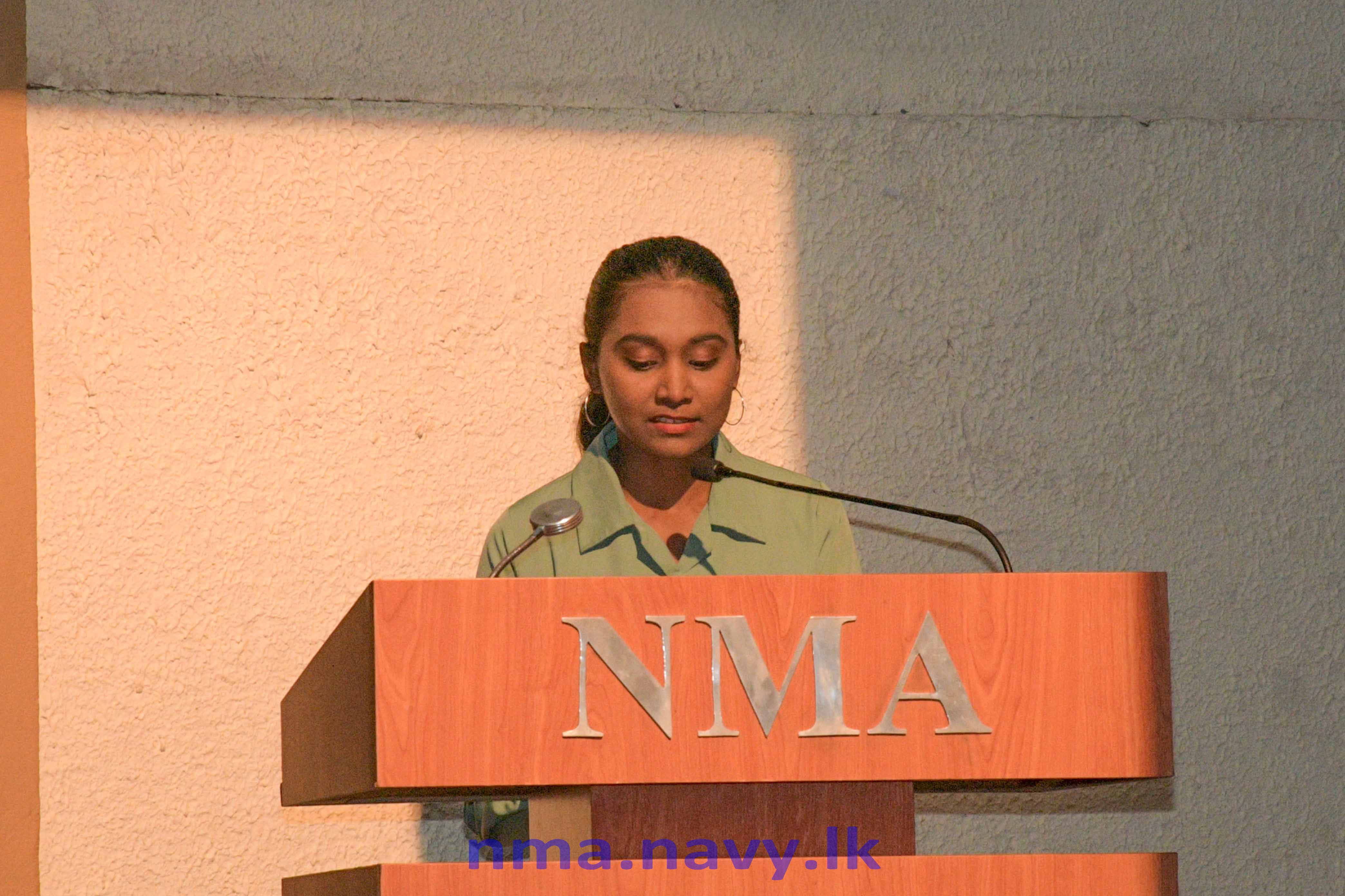 The Commandant of NMA, Commodore Dinesh Bandara, graced the event as the Chief Guest. The Deputy Training Captain, the officers of the Directing Staff, the Commanding Officer, and the officers of the Admin, along with the senior and junior sailor instructors of NMA, and all the student officers and under trainees, witnessed the programme. The Chief Guest admired the talents of the young cadets and appreciated the effort and dedication of the Officer Training Officer, the divisional officers, and instructors of the divisional team of the 68 th intake, as well as the staff of the Officer Training Wing, for their immense dedication to grooming the cadets and moulding them for the future SL Navy. In addition, he admired and appreciated the commitment of the Officer in Charge and the English instructors of the Language School for their immeasurable involvement in providing assistance to empower language competencies as an integral component of their intensive module.