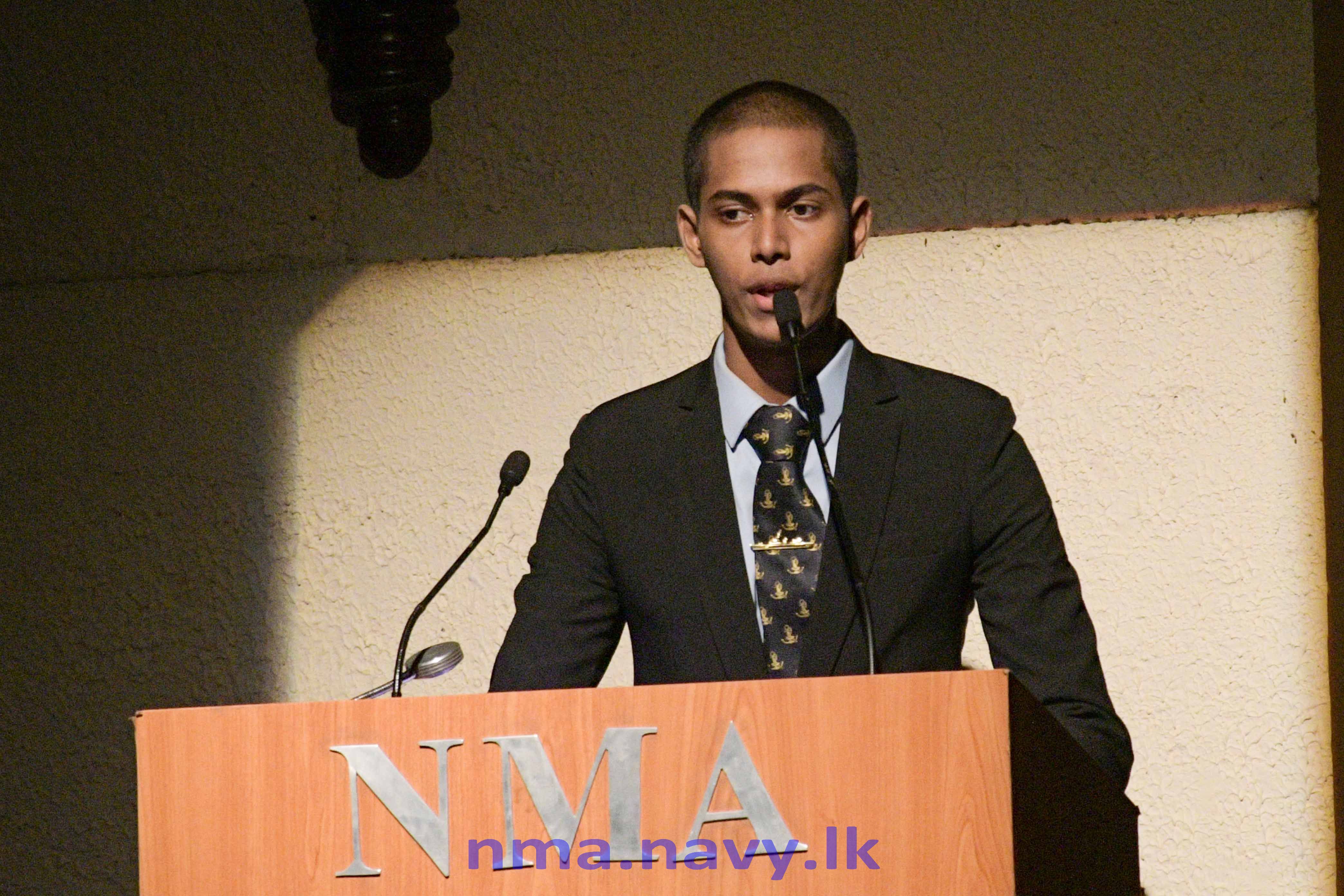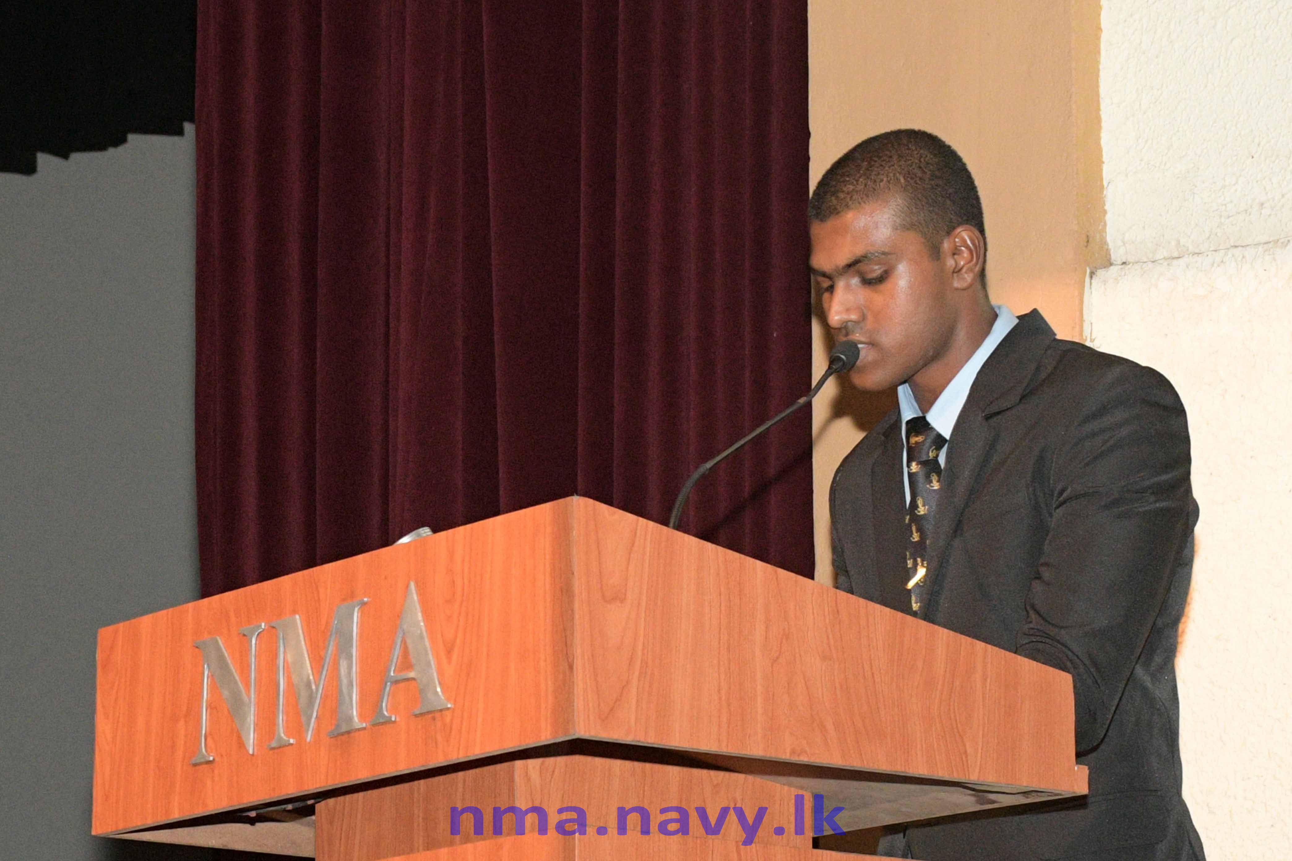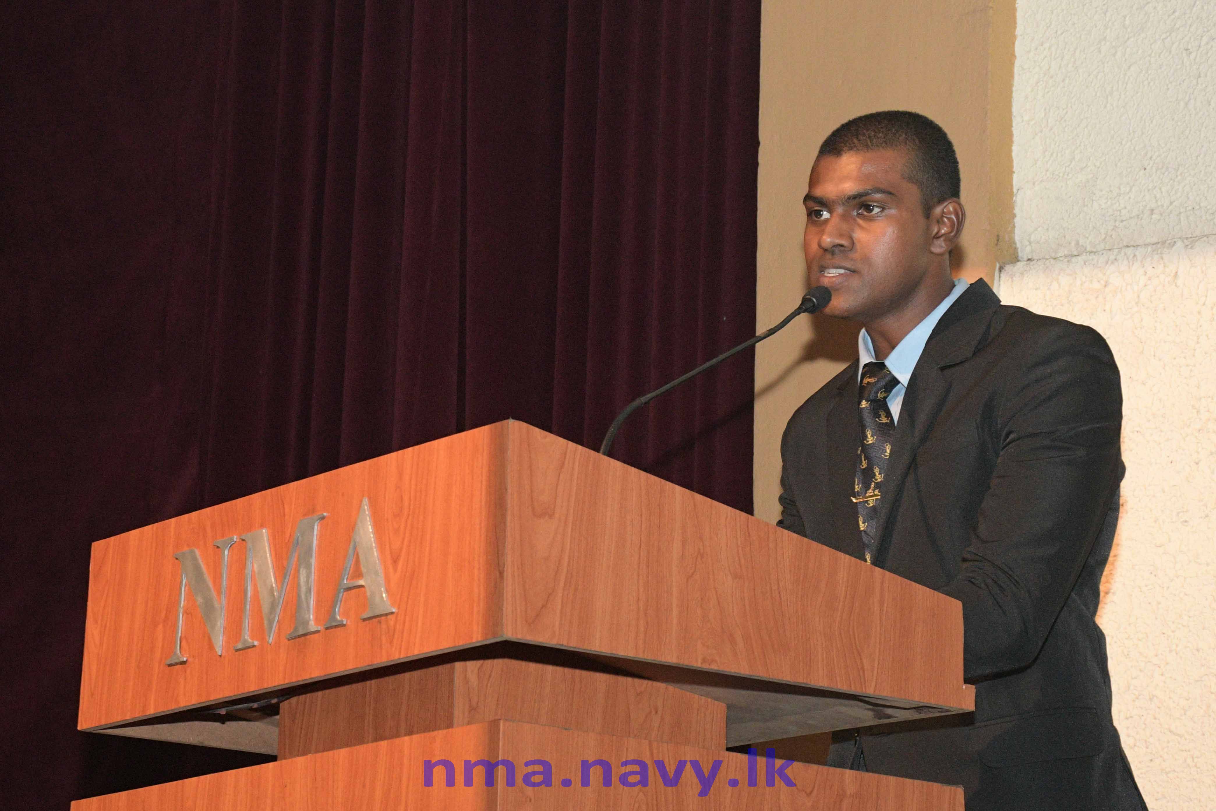 The Commandant of NMA, Commodore Dinesh Bandara, graced the event as the Chief Guest. The Deputy Training Captain, the officers of the Directing Staff, the Commanding Officer, and the officers of the Admin, along with the senior and junior sailor instructors of NMA, and all the student officers and under trainees, witnessed the programme. The Chief Guest admired the talents of the young cadets and appreciated the effort and dedication of the Officer Training Officer, the divisional officers, and instructors of the divisional team of the 68 th intake, as well as the staff of the Officer Training Wing, for their immense dedication to grooming the cadets and moulding them for the future SL Navy. In addition, he admired and appreciated the commitment of the Officer in Charge and the English instructors of the Language School for their immeasurable involvement in providing assistance to empower language competencies as an integral component of their intensive module.