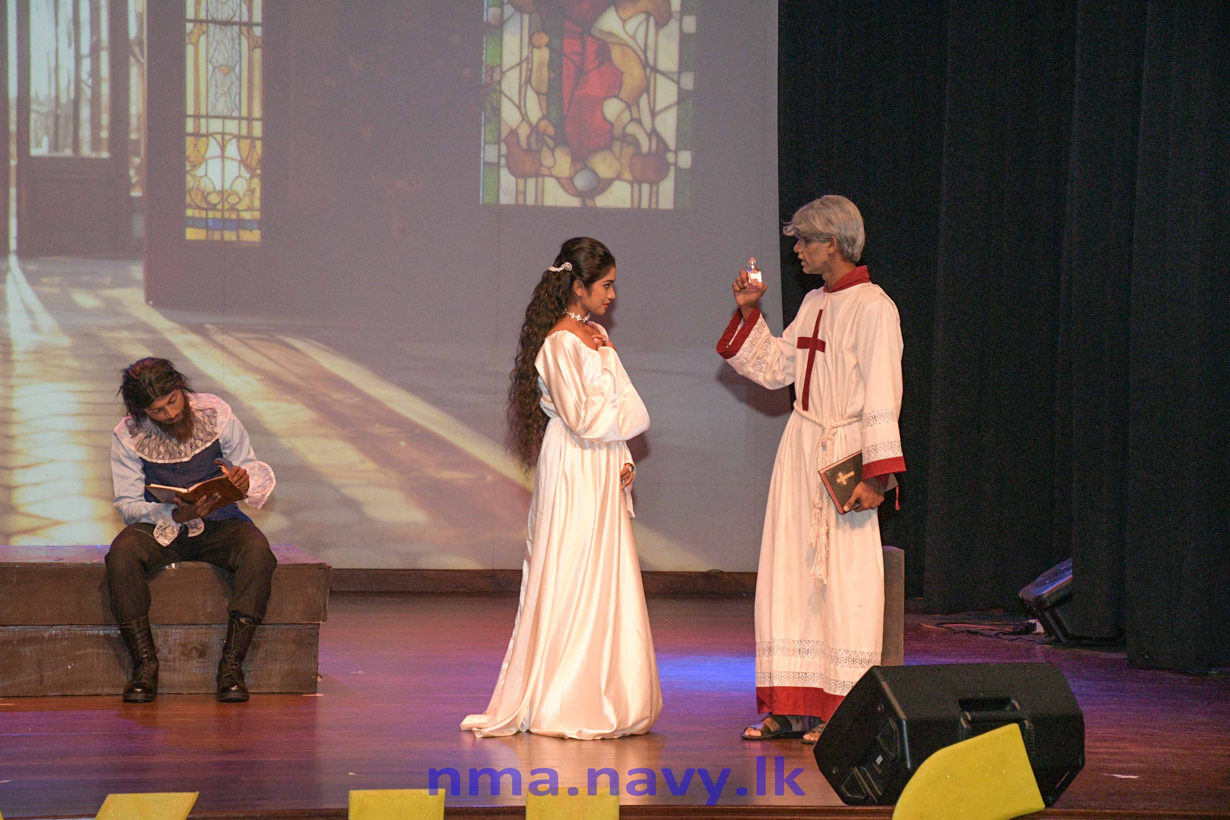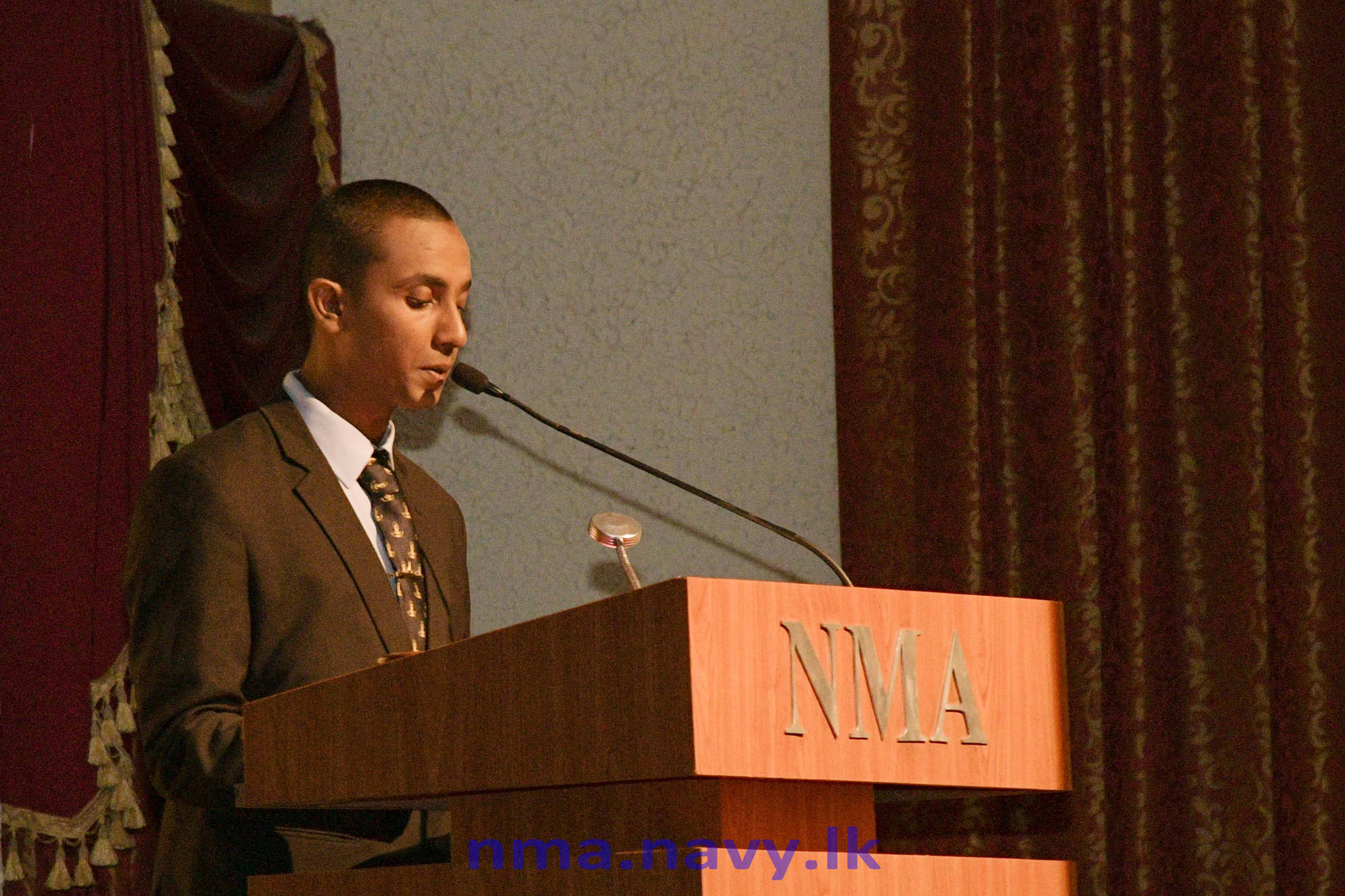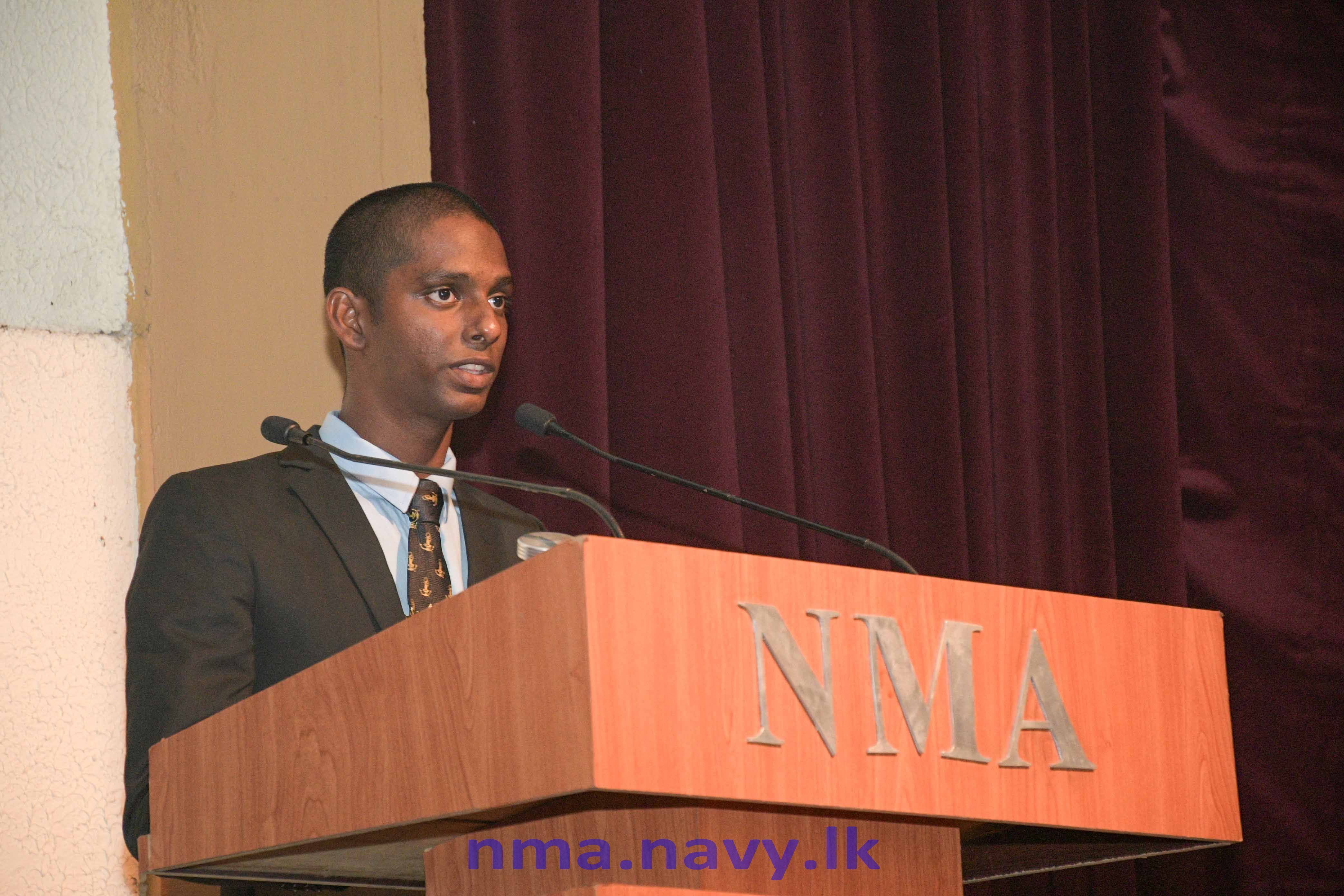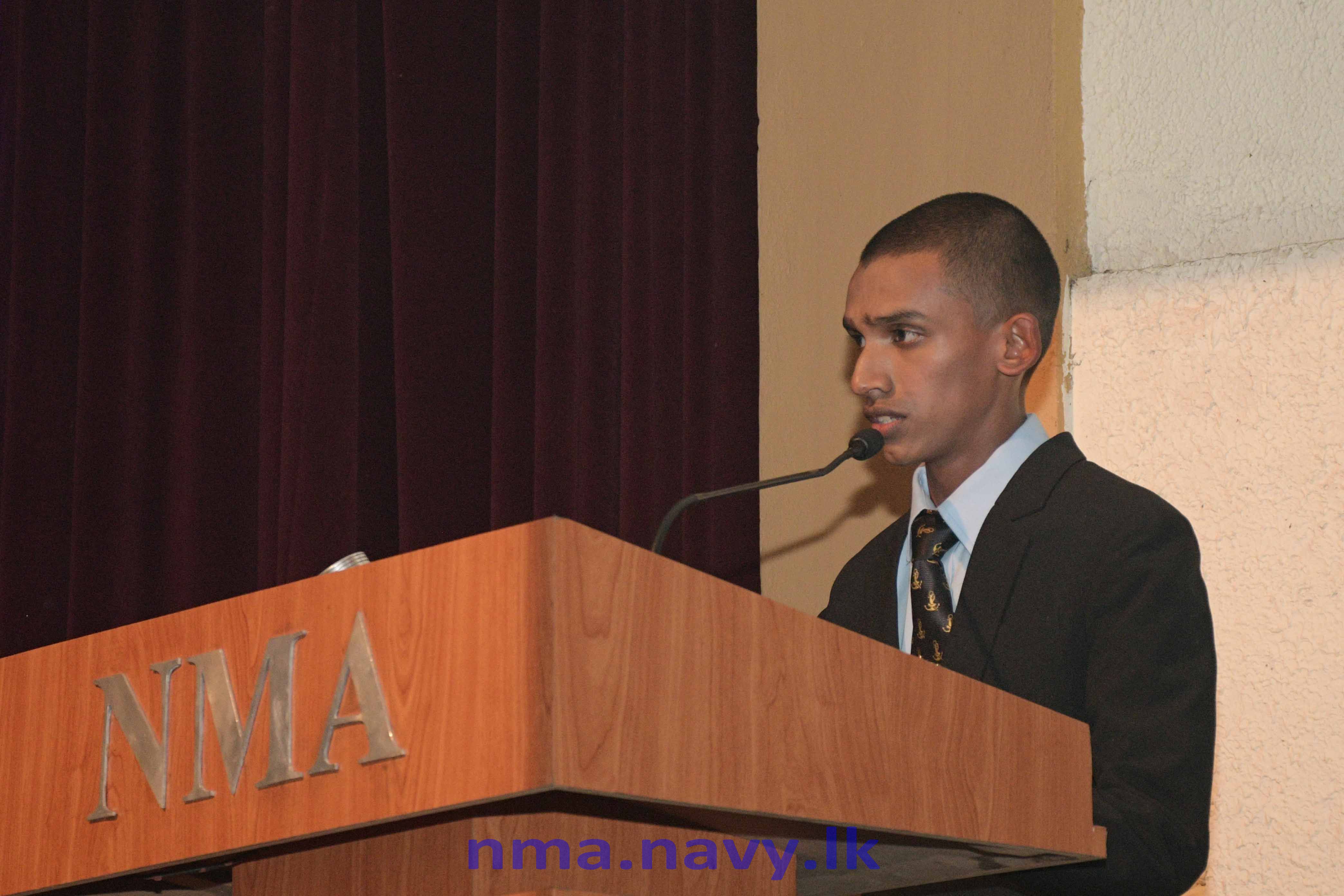The Commandant of NMA, Commodore Dinesh Bandara, graced the event as the Chief Guest. The Deputy Training Captain, the officers of the Directing Staff, the Commanding Officer, and the officers of the Admin, along with the senior and junior sailor instructors of NMA, and all the student officers and under trainees, witnessed the programme. The Chief Guest admired the talents of the young cadets and appreciated the effort and dedication of the Officer Training Officer, the divisional officers, and instructors of the divisional team of the 68 th intake, as well as the staff of the Officer Training Wing, for their immense dedication to grooming the cadets and moulding them for the future SL Navy. In addition, he admired and appreciated the commitment of the Officer in Charge and the English instructors of the Language School for their immeasurable involvement in providing assistance to empower language competencies as an integral component of their intensive module.