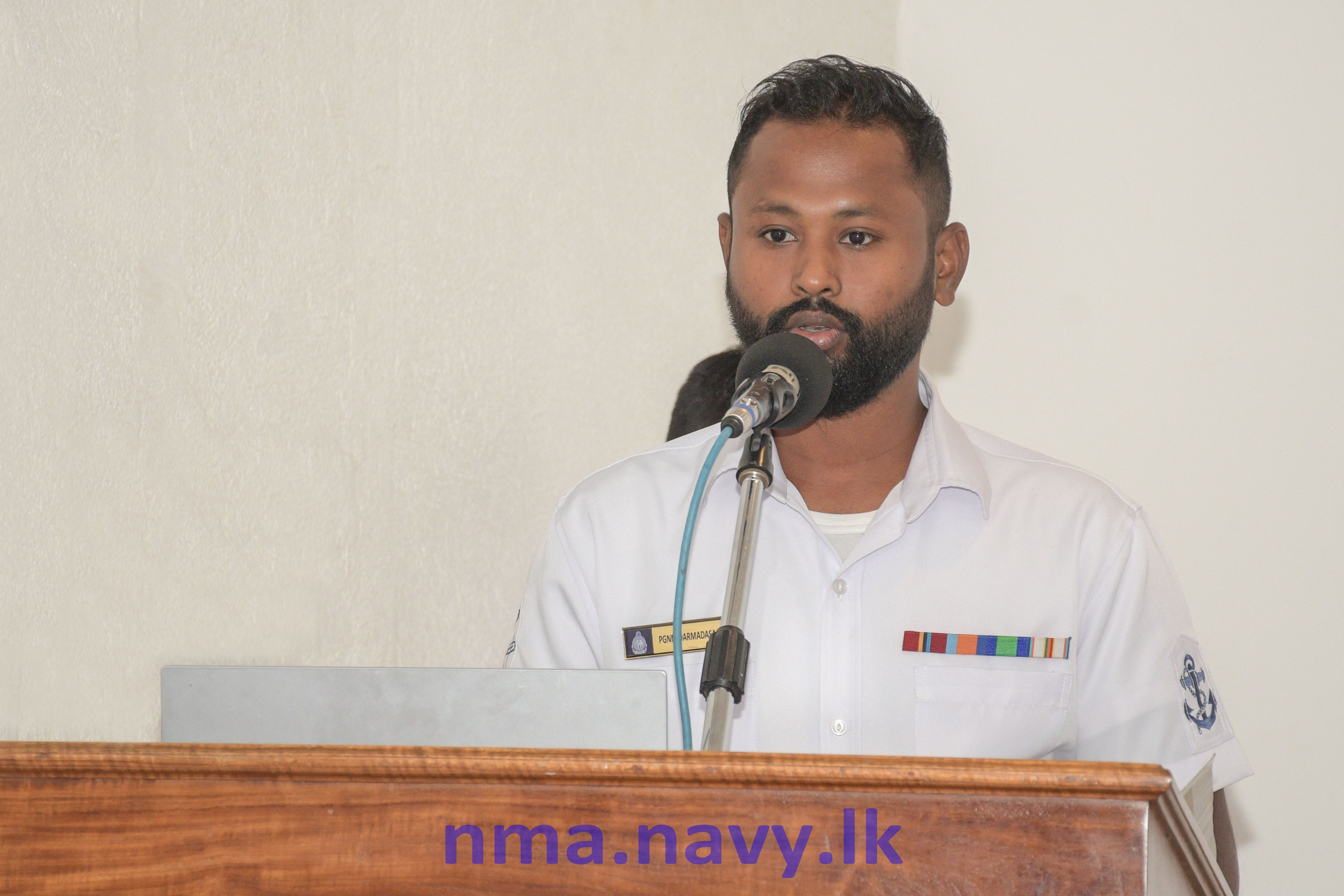 PO 'Q' SA/WTR பாடநெறி எண். 02/2025 இன் நிறைவு விழா ஜனவரி 16, 2026 அன்று கடற்படை மற்றும் கடல்சார் அகாடமியின் (NMA) சிவில் பொறியியல் பள்ளி ஆடிட்டோரியத்தில், தளவாடங்கள் மற்றும் மேலாண்மைப் பள்ளியின் பொறுப்பாளர், 3வது பொறுப்பாளர், மூத்த மற்றும் இளைய பயிற்றுனர்கள், மொழிப் பள்ளியின் பொறுப்பாளர் மற்றும் பிற பயிற்றுனர்கள் முன்னிலையில் நடைபெற்றது.