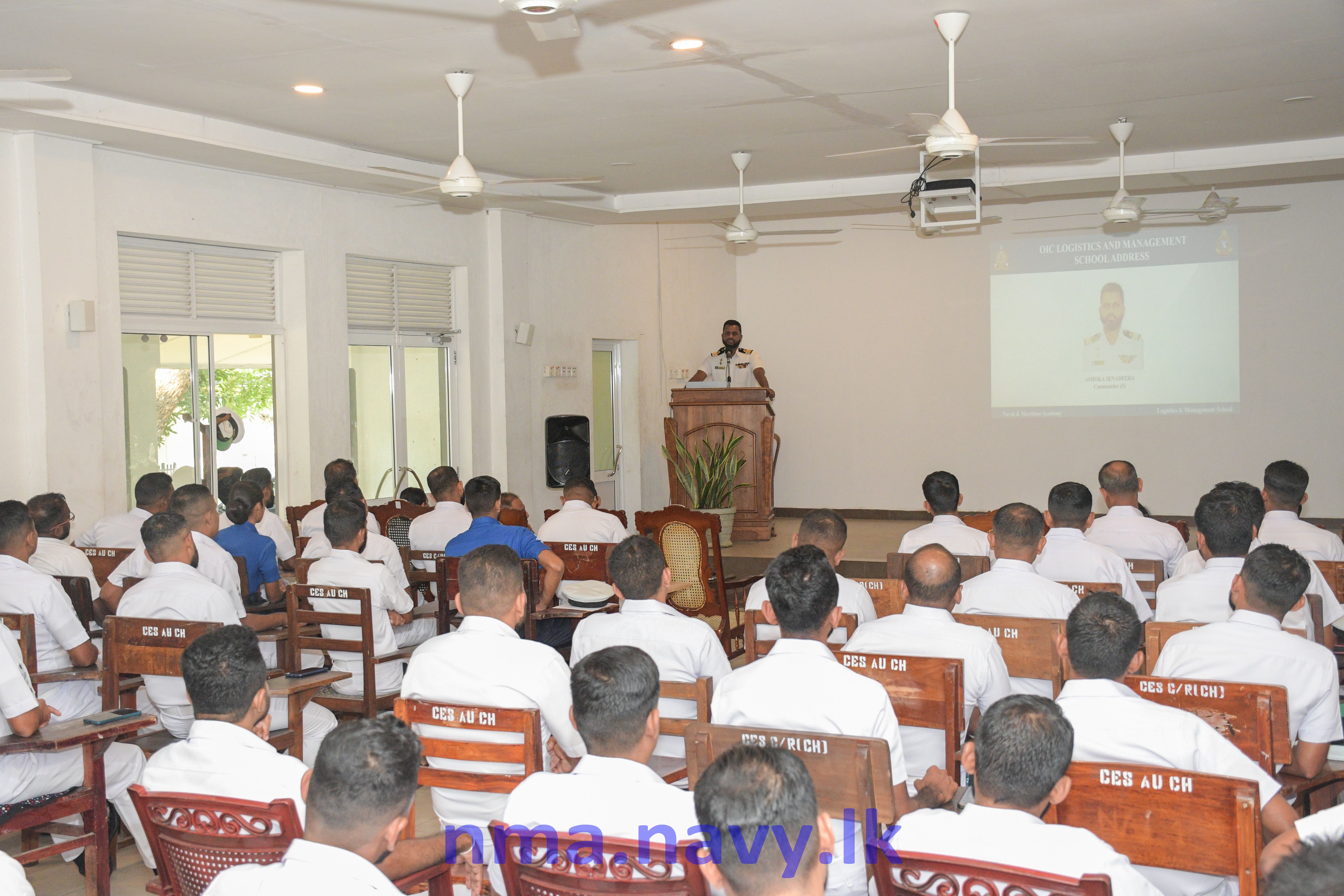 லாஜிஸ்டிக்ஸ் மற்றும் மேனேஜ்மென்ட் பள்ளியின் பொறுப்பாளர், கமாண்டர் (எஸ்) எம்.ஏ.கே. சேனாதீர, பிஎஸ்சி, எல்.எல்.எம்.சி., நிகழ்வில் பிரதம விருந்தினராகக் கலந்து கொண்டு, தனது நிறைவு உரையின் போது அனைத்து பாடநெறி பங்கேற்பாளர்களையும் வாழ்த்தினர்.