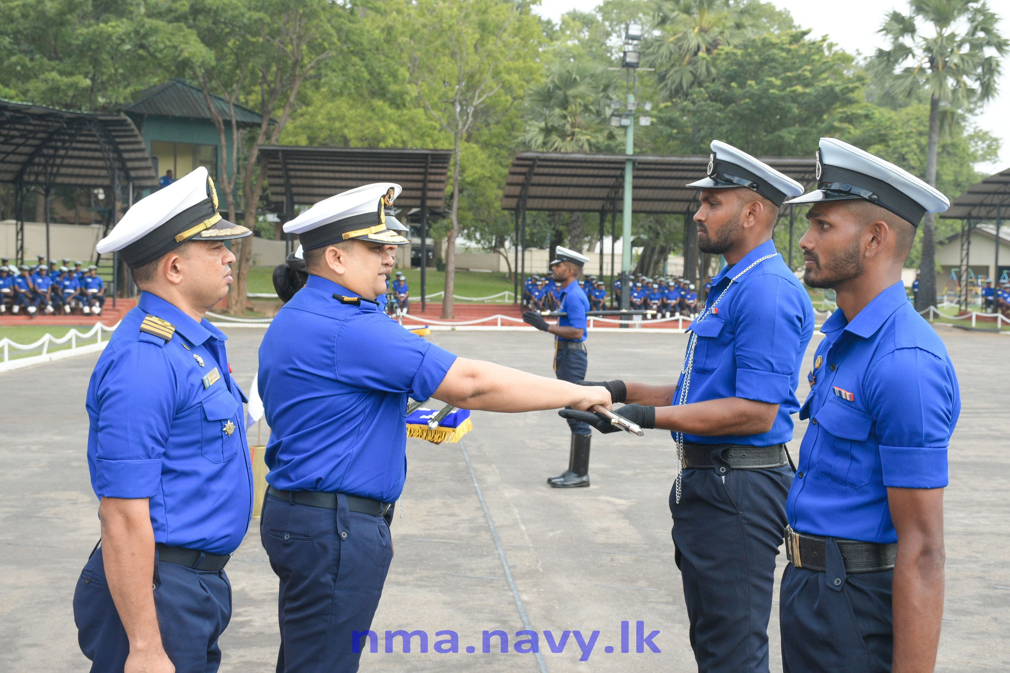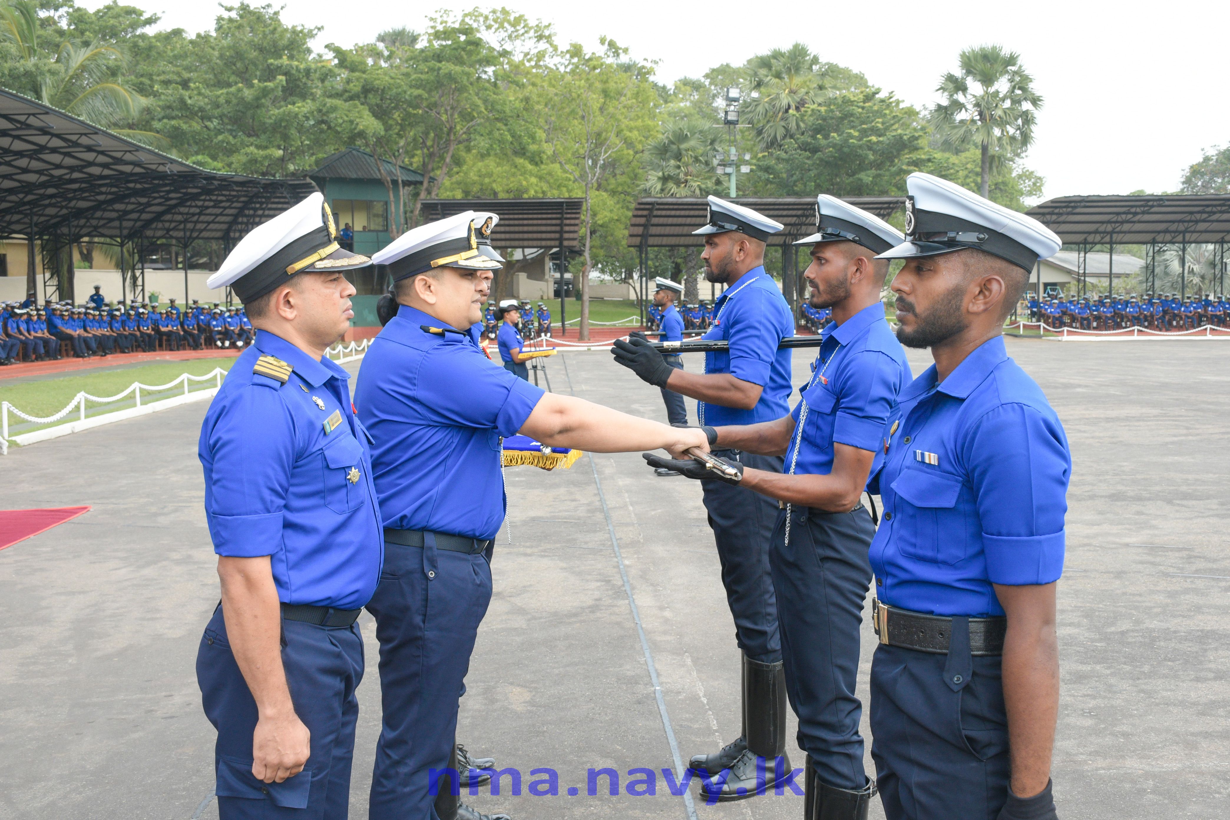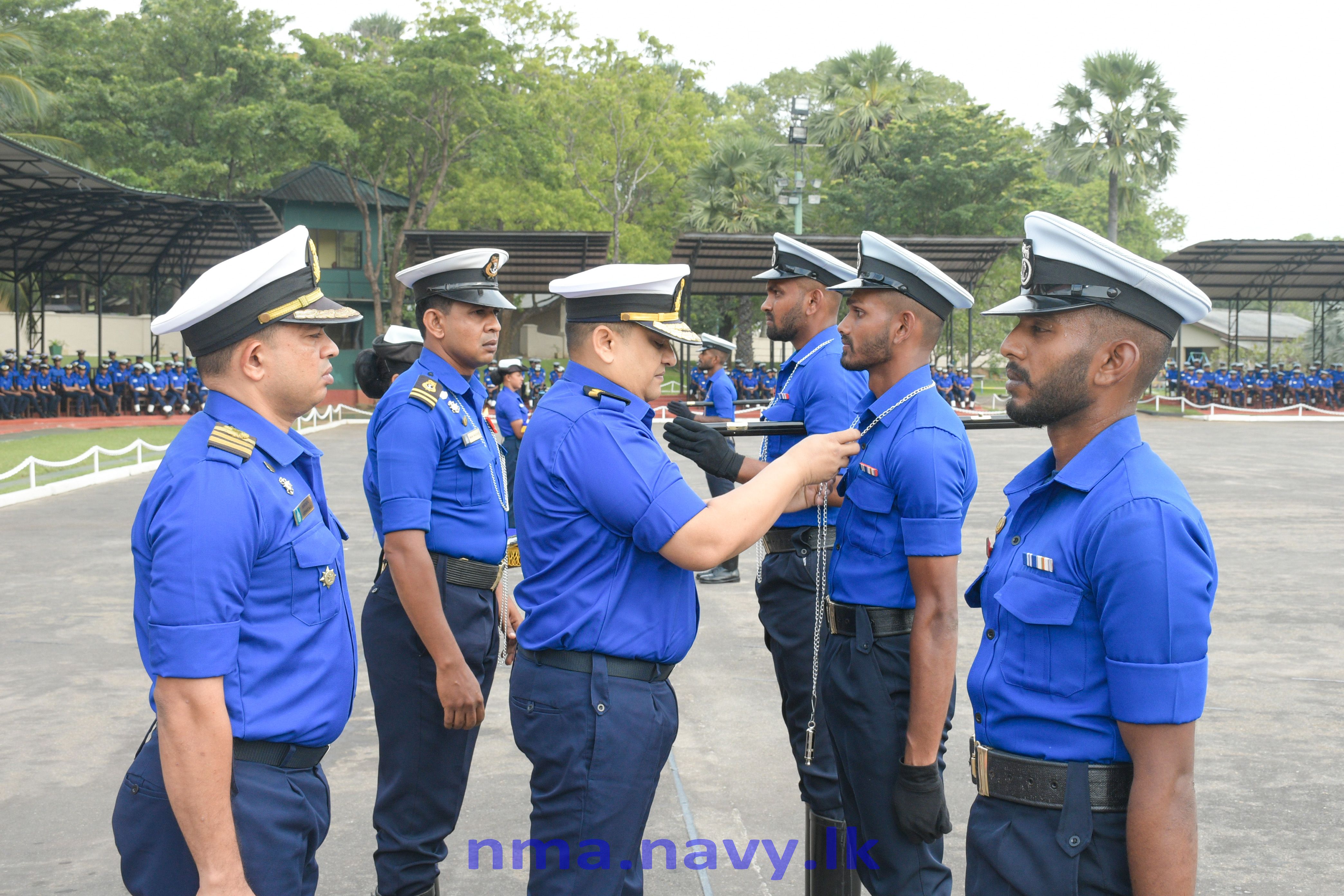 සියලුම විෂයන්ගෙන් වැඩිම ලකුණු ලබා ගැනීම සහ විශිෂ්ඨ සරඹ හැකියාවක් පෙන්නුම් කරන ලද නාවිකයා වෙනුවෙන් පිරිනමනු ලබන තඹ ආලේපිත දම්වැල බ/නැවි (සඋ) ඩබ්ජීඑස් වික්රමසිංහ එක්ස්එස් 117804 විසින් හිමිකර ගන්නා ලද අතර සරඹ උපදේශක සුදුසුකම් ලැබීමේ පාඨමාලාව සාර්ථකව නිම කිරීමෙන් පසු අනෙකුත් සරඹ උපදේශකයින් තුන් දෙනා හටද හිමි පියවර කෝදු සහ දම්වැල් මෙම අවස්ථාවේදී ප්රදානය කරන ලදී.